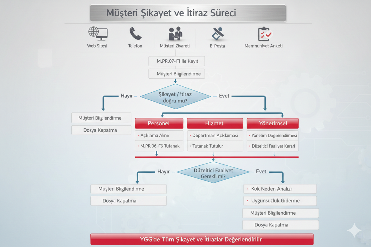Muayene süreçlerimize ilişkin başvurularınız aşağıdaki süreçte belirtildiği gibi kayıt altına alınır, değerlendirilir ve sonuçlandırılır. Süreç boyunca tarafınıza bilgilendirme yapılır. Öneri / Şikayet / İtiraz / Memnuniyet bildirimleri için bizlere başvurabilirsiniz.
